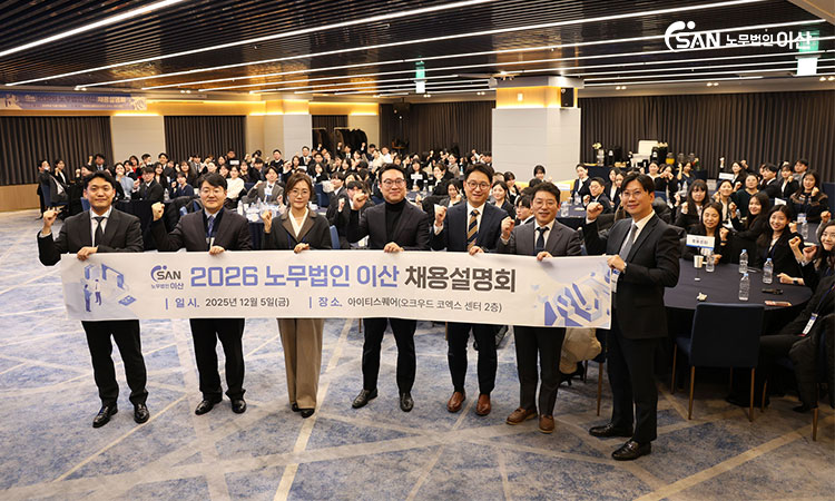 2025년 12월 5일 금요일, 서울 강남구 삼성동에 위치한 '아이티스퀘어(오크우드 코엑스 센터 2층)'에서「2026 노무법인 이산 채용설명회」가 진행되었습니다!본 행사는 예비 공인노무사들을 대상으로 노무 직무에 대해 설명하고,우수 인재 발굴을 위해 마련한 자리로 2025년부터 매년 진행되고 있습니다. 올해 채용설명회에는 법률센터, 산재보상센터, 4대보험센터, 노사관계연구원, 산업안전보건센터 등노무법인 이산의 모든 부서가 참여하여 노무 분야의 여러 업무를 소개했습니다.올해 역시 지방 인재들의 참여 편의를 위해 34기 공인노무사 3차 면접 당일 오후에 진행하였습니다.(부득이하게 참석이 어려웠던 부울경 지역 예비 공무노무사를 대상으로 2차 설명회를 진행하기도 했습니다!) 이번 채용설명회를 통해 예비 공인노무사들은 노무 분야의 다양한 업무를 한 자리에서 파악할 수 있는 자리였는데요. 행사장에는 각 분야에서의 경험이 풍부한 이산의 선배 공인노무사들이 참석하여 질의응답 등을 통해 실무에 대해 깊이 이해할 수 있는 시간을 갖기도 했습니다. 또한, 대형 노무법인의 특징을 직접 확인할 기회도 제공되어, 향후 공인노무사로서의 진로 설계에 큰 도움이 될 것으로 기대됩니다.참고로, 이번 행사에 참가한 예비 공인노무사에게는 노무법인 이산에 채용 지원 시, 가산점이 부여되는 혜택도 제공됩니다! 예비 공인노무사에게 실질적인 정보를 제공하고, 미래를 설계하는 데 큰 도움을 주기 위해 매년 개최하고 있는 채용설명회!본 행사는 노무법인 이산의 인재 발굴과 교육을 위한 일환으로 앞으로도 다양한 프로그램을 통해 노무 분야의 발전에 기여할 계획입니다. 매년 개최되는 노무법인 이산의 채용설명회는 단순한 정보 제공을 넘어,실무 경험과 네트워킹의 장으로 자리 잡기를 기대합니다. 참석해 주신 예비 공인노무사님께 축하와 감사의 인사를 다시 한 번 전합니다!