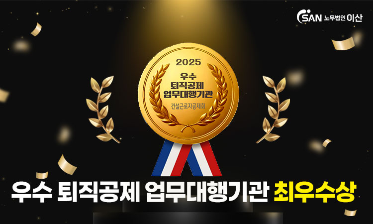 지난 12월 19일, 노무법인 이산이 건설근로자공제회가 주관한 ‘2025년 퇴직공제 업무대행기관 우수기관 시상식’에서 최우수상을 수상했습니다!■ 건설근로자 권익 보호와 정확한 행정 서비스의 결실 건설근로자공제회는 매년 △퇴직공제 신고의 정확도 △제도 활성화 기여도 △서비스 운영 수준 등을 기준으로 업무대행기관을 종합 평가해 우수 기관을 선정하고 있습니다.이번 평가에서 저희 노무법인 이산은 모든 항목에서 높은 점수를 받아 최우수상을 수상,건설업 노무관리 분야에서의 전문성과 신뢰를 다시 한 번 인정받았습니다.■ 노무법인 이산만의 차별화된 통합 솔루션 노무법인 이산은 단순히 신고 대행에 그치지 않고, 건설사의 업무 효율을 극대화하는 종합 노무관리 서비스를 제공하고 있습니다.건설업을 둘러싼 법령과 제도의 빠른 변화 대응, 복잡한 하도급 구조와 특별근로감독 및 국토부 합동 점검 강화,노동분쟁이 발생하지 않도록 사전 관리, 자료 연계 강화 등 건설업 4대보험 관리 전반을 책임지고 있습니다.■ 언제나 함께하는 노무법인 이산이 되겠습니다 이번 최우수상은 저희를 믿고 함께해 주신 고객 여러분 덕분입니다.노무법인 이산은 앞으로도 변화하는 건설 현장의 요구에 한발 앞서 대응하고, 가장 정확하고 신속한 노무관리 서비스를 제공하기 위해 끊임없이 노력하겠습니다.건설근로자의 복지 향상과 건설사의 안정적인 운영을 위해 항상 곁에서 함께 뛰겠습니다!
